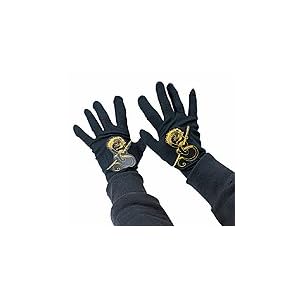 Category: Toys & Games Vendor: Manufactured by Rubies Costume Company Product Description : Ninja gloves are black, made of cloth fabric, and feature a design in gold of a dragon wrapped around a sword. Gloves measure about 8" in length.